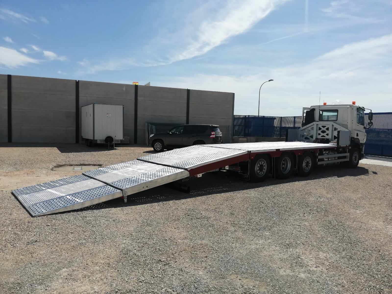 - Con conjunto de pilares, rampa de acero y rampas abatiles de aluminio.