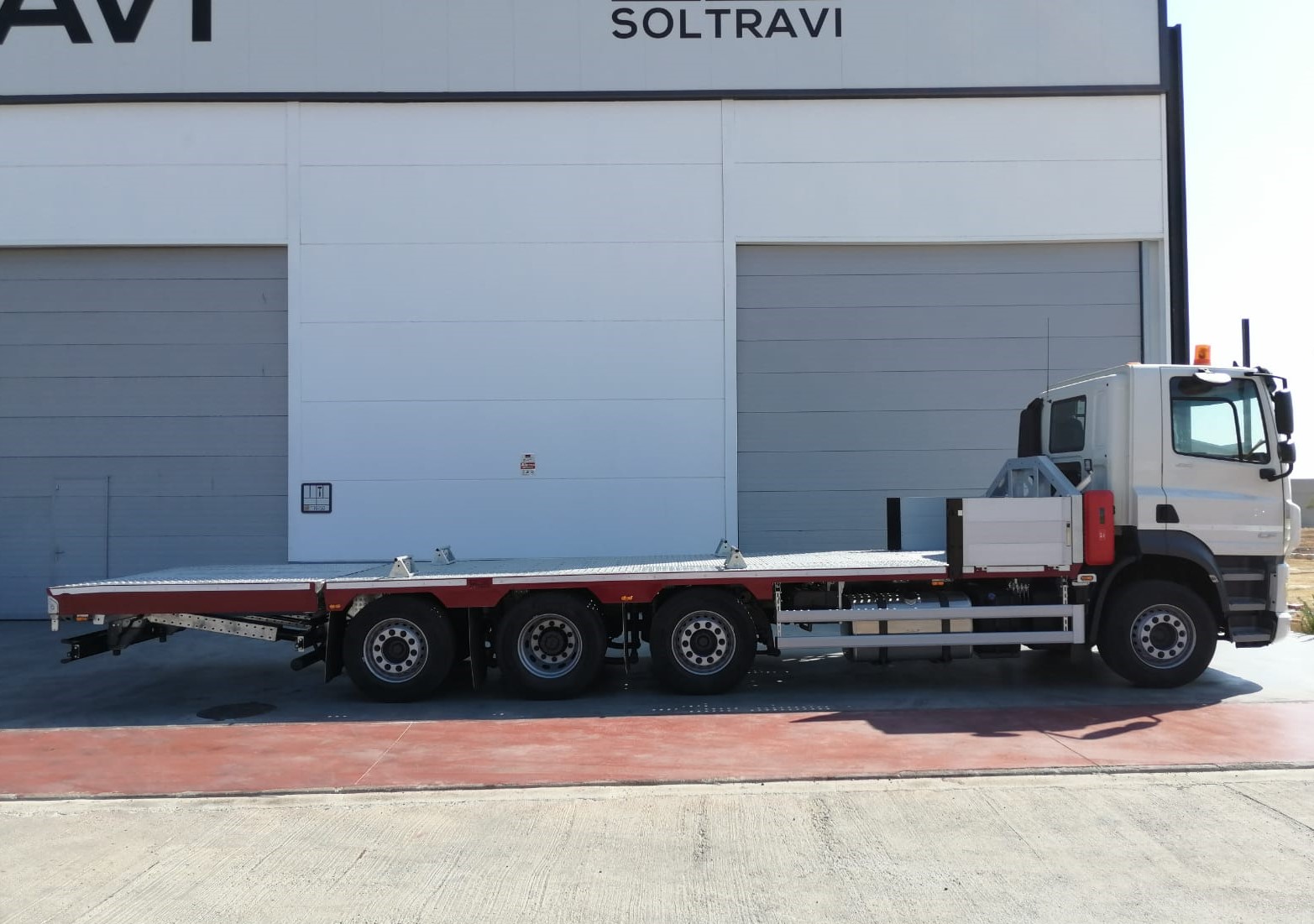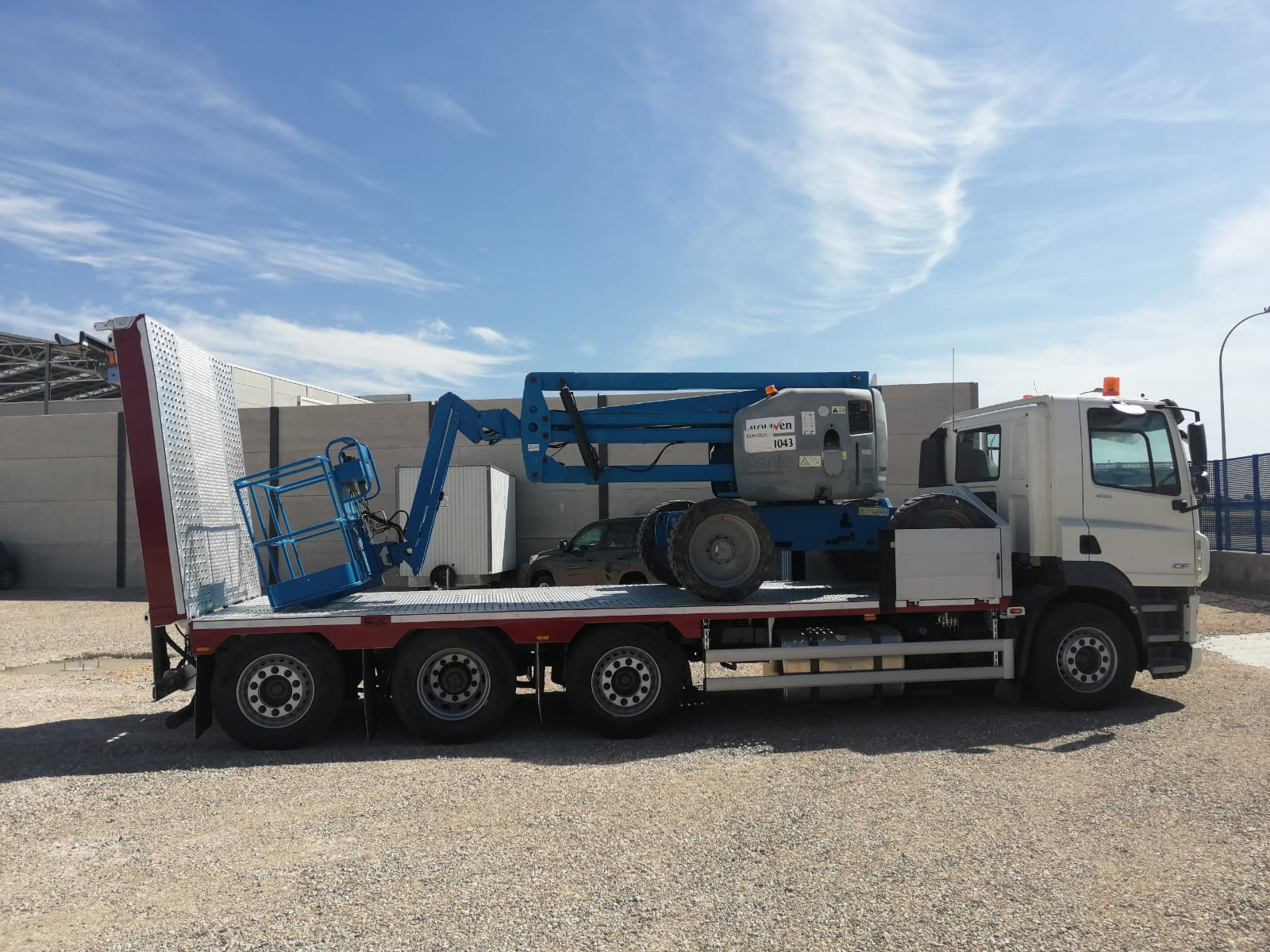 - Voladizo trasero inclinable hidráulicamente con rampas extensibles hidráulicas hasta suelo.